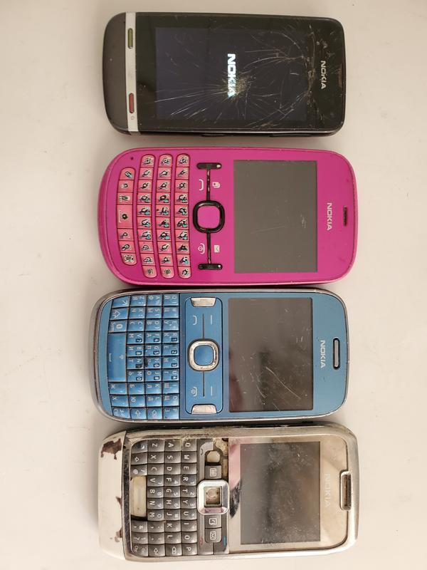 Телефон смартфон Nokia Asha 311 вмикається, скло розбите, сенсор не працює. 200 302 E71 не робочі. Всі без акб, без кришок. Дістались в такому стані, історія невідома.