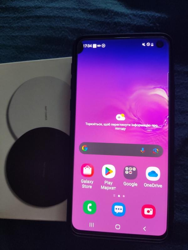 samsung s10e один из лучших самсунгов за всю историю компактный идеально сидит в руке экран без выгораний имеет маленькую черную пятно смотрите фото имеет беспроводную зарядку которая идет в комплекте привезенный из Европы год назад пользуюсь год все работает хорошо пятно не увеличивается имеет 6 ГБ оперативной памяти 128 внутренней памяти имеет мощный процессор красивые камеры с основной со сменной диафрагмой и сверхширокая в комплекте идет беспроводная зарядка + 100 грн шнур наклеено стекло и бампер чехол