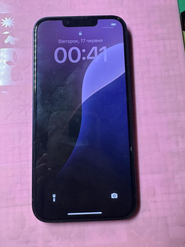 Смартфон iPhone 13 у синьому кольорі. Операційна система - iOS. Бренд телефону - Apple. Батарея - 85%. Стан - дуже хороший. На фото присутнє на екрані захисне скло!! 128 гб. Усі функції працюють.