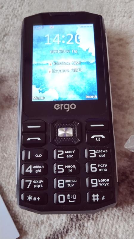 включается работает в хорошем состоянии, царапины на задней крышке Описание Яркий дизайн и практичность ERGO E282 Dual Sim – прочный и стильный телефон с широким диапазоном функций. Девайс оснащен дисплеем в 2.8", который обеспечивает качественное изображение и визуализирует меню с понятной навигацией и иконками. Это позволяет легко управлять устройством и настраивать его. Надежный телефон для активных людей Модель ERGO E282 Dual Sim подходит для ведущих активный образ жизни. Специальный корпус предотвращает попадание пыли и грязи внутрь телефона, а персональные данные, хранящиеся на 32 МБ встроенной памяти и на карте памяти до 32 ГБ, надежно защищены от механических повреждений. в качестве зарядного устройства Благодаря функции Powerbank, ERGO E282 Dual Sim можно использовать для подзарядки других гаджетов, что делает модель незаменимым спутником в путешествиях и хорошим помощником при отсутствии электротока. Мощный аккумулятор и качественная связь Мощный аккумулятор 4000 мАч обеспечивает длительную работу мобильного телефона без дополнительных подзарядк. Благодаря слотам для двух SIM-карт можно не переплачивать за звонки и общаться с абонентами различных операторов, а также настроить выгодный тариф для использования мобильного интернета, ведь телефон поддерживает функцию 2G. Характеристики Серия Energy Стандарт связи 2G (GPRS/EDGE) Диагональ экрана 2.8 Разрешение дисплея 240x320 Тип матрицы TFT