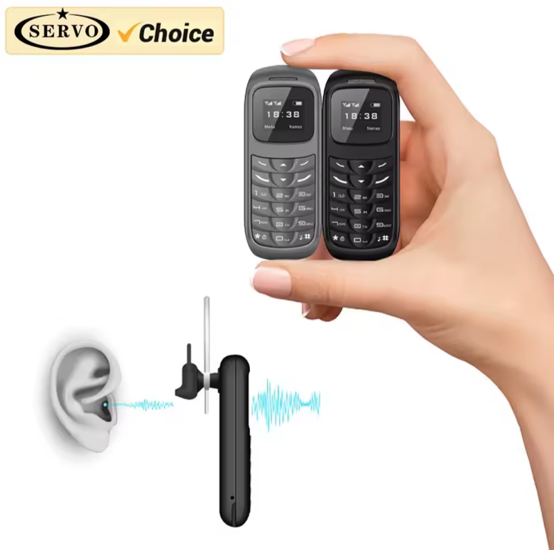 Мини-телефон SERVO L8STAR BM70 на 2 sim карты имеет размеры всего 6.99 х 2.8 х 1.3 сантиметра! Это маленькое устройство может работать как полноценный телефон GSM, гарнитура и блютуз-ассистент вашего смартфона! В модели BM70 используется микро Сим-карта. Поддерживает семь-карты всех операторов связи, набор СМС на английском и русском языках. Мягкий силиконовый наушник легко вынимается и блютуз гарнитура превращается в микроскопический мобильник. Батарея держит 3 часа в режиме разговора и до 3 дней в режиме ожидания. Телефон BM70 очень легкий (вес 20 грамм) и полностью изготовлен из пластика. В наличии серый цвет.