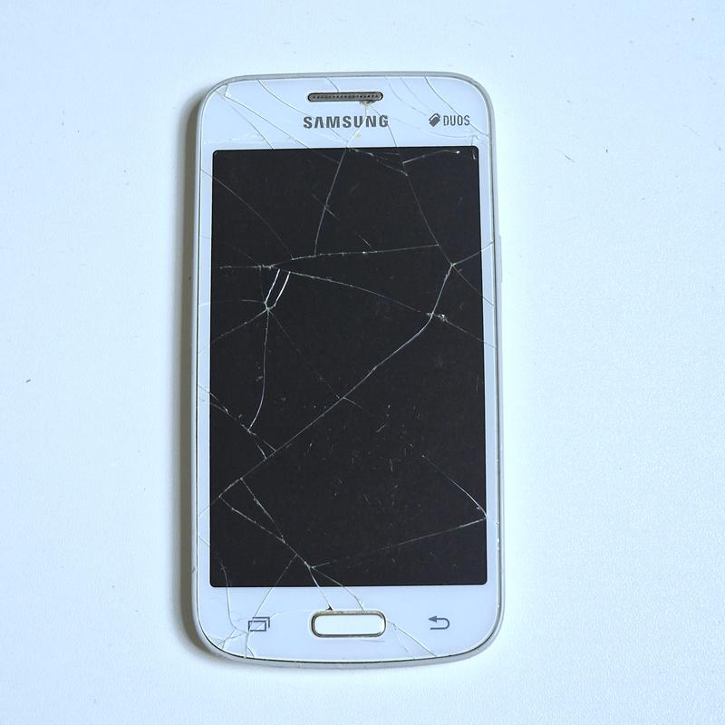 Телефон рабочий, включается, битый нкраный сенсор, без АКБ