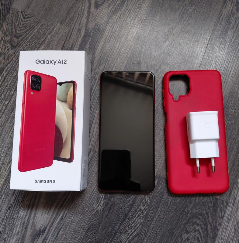 Samsung galaxy A12, в идеальном состоянии, красный, блок питания и чехол, память 4/64