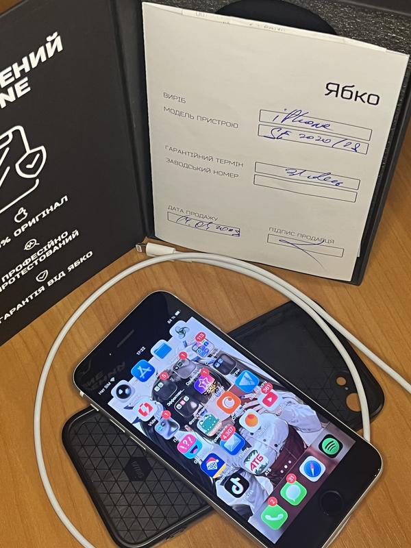 Вітаю Вас на цьому оголошенні. Продаю Apple iPhone SE 2020 128 gb стан 9/10, я один господар після покупки в Ябко. В ремонті не був, тільки мінявся акумулятор. Перевірявся в додатку 3uTools. Дефекти на фото (маленькі царапки на екрані і нижній правий кут в маленьких точках) Технічно ідеальний, Touch ID працює, кнопка працює коректно, камери, WiFi і мережа, Simкарту бачить відразу. Є чек, шнур, чехол і оригінальний сім-лоток (номер пробивається як оригінал до цього iPhone) Всі перевірки і доп фото скину в повідомлення. Фото зроблені до скидання заводських настройок. Всім вдалих покупок і всіх вітаю зі святами )