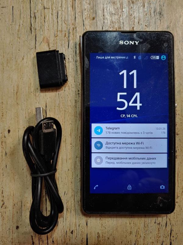 Смартфон Sony Z1 Compact на операционной системе Android. - В свое время флагман с довольно шустрой начинкой. Компактный и легкий, идеално как для второго телефона - Качественный HD экран - wi-fi, bluetooth, gps - Камера 20 мп Нюанси: - Плохо держит аккумулятор - до вечера едва доживает при малых использовании. если активно то 2-3 часа и надо заряжать. - Отсутствие магнитного бокового дока (вцелом от него мало толка) - плохо прилегает заглушка разъема зарядки - Формально отсутствует лоток для семь... но семка встает и без него и удачно работает Косметическое состояние на 4-х. Есть следы эксплуатации, небольшие потертости на экране и задней крышке, трещин и сколов нет (наклеенная пленка под карбон, можно снять) Цена 500 грн (возможен аргументированный торг) Открытка Укрпоштой и Новой почтой