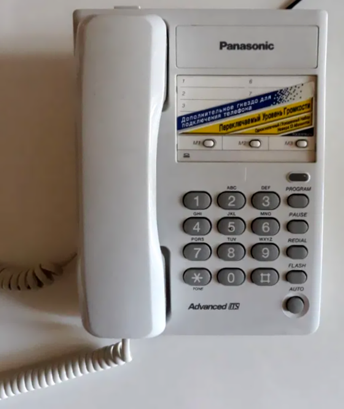 Стационарный проводной телефон. в хорошем состоянии. Двойная функциональность и подключение проводного телефона Panasonic KX-TS2361: Кнопка программирования «вспышка» (600 мс) Регулировка громкости зонка Индикатор голоса (лампа на корпусе) Одна кнопка переключает тональный набор Однокнопочный повторный набор Разъем для сдвоенного телефонного оборудования Электронный регулятор громкости динамика в трубке (4 уровня) Набор номеров одной кнопки (3 клавиатуры) Топовый номер для 13 подписчиков Двойное подключение для подключения телефона Кнопка «Разорвать». Возможность установки на стене Цвет белый Высылаю по Украине.