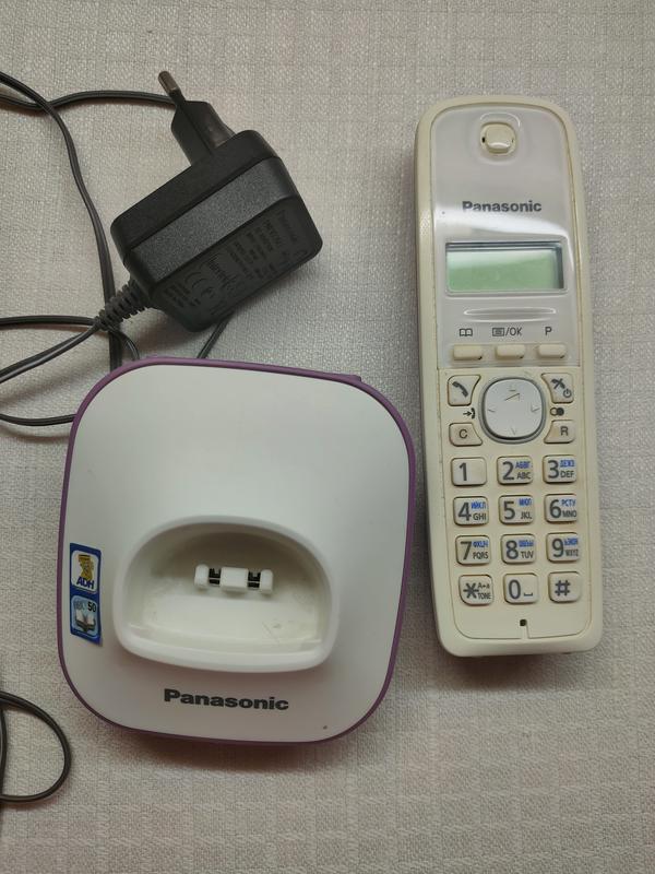 Бездротовий телефон Panasonic. Трубка, база, дріт. Без коробки. Був в використанні, але все працює ідеально. Трубка працює від 2х акку батарейок.
