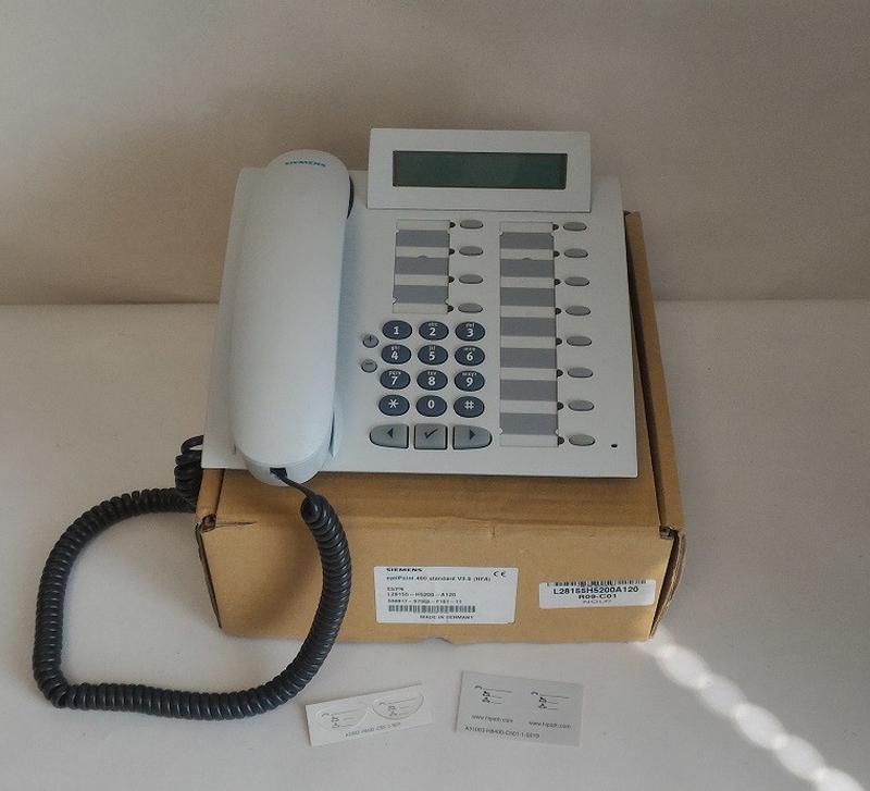 Внимание: в комплекте нет блока питания от розетки 220В (однако телефон также может запитываться через локальную сеть по стандарту 802.3af). Системный IP телефон Siemens optipoint 400 standard (standart) V3.0 (HFA) белого цвета подходит для офисных АТС Siemens HiPath 3000, 4000 и 5000. HFA (HiPath Feature Access) обозначает, что телефон подключается к корпоративной IP-телефонии Siemens/Unify CorNet IP и поддерживает её специфические функции, в отличие от стандартного протокола SIP. Такие телефонные аппараты делают интеграцию голосовых услуг в Вашу IP-сеть передачи данных такой же простой, как подключение телефона. Пользователи пользуются всеми преимуществами расширенных функций, таких как интуитивно понятное меню и программируемые клавиши функций, а также экономят средства за счет маршрутизации голосовых вызовов по своей IP-сети. IP-телефоны optiPoint 400 standard поддерживают H.323, H.450, Cornet IP. Используют стандартный Ethernet-интерфейс IEEE 802.3 со встроенным 2-портовым Ethernet-коммутатором, обеспечивая все удобства телефонов Siemens на настольном IP-устройстве. Кроме того, IP-телефоны optiPoint 400 standard снижают расходы на обслуживание и администрирование сети, поскольку их можно легко добавлять по мере роста сети. Фактически, пользователи могут перемещать их из одного места в другое без помощи сетевых администраторов. Удобные функции системного администрирования на основе HTTP упрощают администрирование системы. Поддержка SNMP позволяет управлять сетью с помощью существующих инструментов. Быстрая настройка благодаря протоколу динамической конфигурации хоста (DHCP) обеспечивает эффективное перемещение, добавление и изменение. Точное сетевое время по протоколу SNTP. Автоматическое сохранение номера последних 20 неотвеченных вызовов. Хотя изделие и относится к Б/У (было в использовании), однако реально просто красовалось без использования: - на индикаторе осталась защитная заводская плёнка, - таблички-шильдики против клавиш остались чистыми, не подписанными, - сам аппарат практически не отличим от нового. Комплектация: только сам телефонный аппарат и родная коробка. Без блока питания, без инструкции (инструкция есть в интернете). Аппарат снабжён откидным дисплеем (2 строки по 24 символа). Кроме клавиш набора номера, есть 12 программируемых клавиш со светодиодами, 3 диалоговые клавиши (назад, вперёд, подтвердить) и 2 клавиши управления громкостью (+ и -). Режим hands free (громкая связь и открытое прослушивание). Подавление эха. Протоколы: CorNet IP, H.323, H.450, H.225, H.235, H.245; TCP/IP, FTP, DHCP, SNMP, SNTP, HTTP. Алгоритмы сжатия голоса: G.711 (64 kbps a-law/µ-law), G.723.1 (5.3 kbps/6.3 kbps). Порты (разъёмы): - разъём для блока питания, - разъём телефонной трубки, - 2 порта Ethernet RJ45 (10/100 Mbit/s).