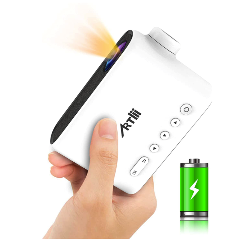 Виробник: Інший виробник Тип проектора: Ультрапортативні Джерело світла: LED Мини-проектор Artlii Q — это последняя модернизированная версия серии YG300. Портативный мини-проектор Artlii Q с поддержкой 1080p Full HD может обеспечить лучший опыт просмотра фильмов и мультфильмов. Лучший опыт за меньшие деньги! (ПРИМЕЧАНИЕ: пожалуйста, используйте его в темноте для лучшего качества изображения). 【Портативный мини-проектор с аккумулятором】 Мини-видеопроектор Artlii Q для наружного применения оснащен перезаряжаемой батареей, которой хватает на 1,5-2 часа, а размер проектора составляет 14,5x9,3x5,6 см и вес 0,32 кг, вы можете легко положить его и идеально в вашем мешке из-за ночи кино. 【Подключение к смартфону】 Портативный мини-проектор поддерживает подключение к телефону и смартфонам Android. Для подключения к смартфону необходимо соединить проектор и смартфон кабелем HDMI-LIGHTING (для iOS) или HDMI-Type-C (для смартфонов Android) (НЕ ВКЛЮЧЕНО). Для беспроводного подключения пико мини-проектора подключите к проектору ключ Fire TV или Chromecast. 【Идеальный подарок для детей】 Портативный мини-проектор Artlii Q очень милый и простой в использовании для детей. Это идеальный подарок на день рождения или Рождество или компаньон для ваших детей. 【Масштаб изображения 75%-100%】Этот портативный мини-проектор имеет функцию масштабирования одного изображения, в отличие от других мини-проекторов. Вы можете настроить размер изображения от 75% до 100%, чтобы получить правильный размер изображения на фиксированном расстоянии.