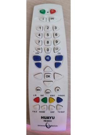Універсальний пульт для ресивера Huayu RM-B553 - якісний універсальний пульт ДУ (дистанційного керування) для супутникових ресиверів і тюнерів. Цей пульт до тюнера , виготовлений з якісного ABS пластику і має 100% сумісність з вашим оригінальним пультом ду. Пульти від всесвітньо відомої компанії Huayu в першу чергу відрізняються якістю свого виготовлення і практично не поступаються оригінальним пультів управління. Дуже якісний товстий пластик, легка, автоматична і ручна настройка цього пульта управління дозволить вам за досить короткий час налаштувати цей пульт управління під ваш тюнер або ресивер. Цим пультом управління ви легко зможете замінити ваш пульт управління, а завдяки своїй високій якості виготовлення він буде служити вам дуже довгий час.