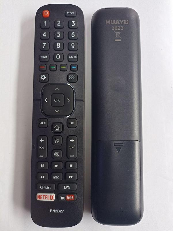 ПУЛЬТ HISENSE EN2B27 - ПУЛЬТ ДЛЯ ТЕЛЕВІЗОРІВ Цей пульт Hisense EN2B27 не оригінальний, якісний пульт управління, для сучасних LCD, LED телевізорів. Виготовленням таких пультів управління займається китайська фірма Huayu, яка володіє такими міжнародними сертифікатами як ISO9001:2000 і RoHS, а також сертифікат CE - сертифікат відповідності всім міжнародним стандартам якості, для безпечного використання в побуті вироблених товарів. Пульт Hisense EN2B27 виконаний із удароміцного ABS пластику, не має неприємного запаху. М'який хід кнопок, фарба яка не злізе через місяць, на відміну від дешевших "китайських" пультів. Завдяки чому саме наш пульт Hisense EN2B27 найбільш привабливий і значно надійніший. ДАНИЙ ПУЛЬТ HISENSE EN2B27 ПІДХОДИТЬ ДО НАСТУПНИХ МОДЕЛЕЙ ТЕЛЕВІЗОРІВ: DEXP H32C8000H H32D8100H F40C8000H F43C8000H F43D8100H U43D9100H F49C8000H F49D8100H F49D8200H F55C8000H U75D9000H HISENSE 32N2170HW 39N2170PW 40N2170PW 43N2170PW 49N2170PW DOFFLER 32DHS69 32CHS71 40CFS71 40DFS69 43CFS71 49CFS71 50DFS69 43DUS89 50DUS89 50EUS73 55DUS89 55DUS93 65DUS86 65DUS93