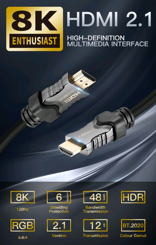Hdmi 2.1 кабель 0.5 м - 8к hdr 3d, 48gbps