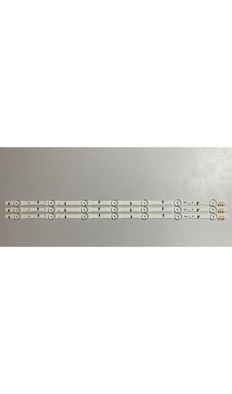 Планка D4GE-320DC0-R2 (D4GE-320DC0-R3, 2014SVS32HD) характеристики: - Маркировка: D4GE-320DC0-R2[14.01.11] (D4GE-320DC0-R3, 2014SVS32HD) - Рабочее напряжение одного светодиода: 3 В - Количество светодиодов на каждой планке: 7 шт. - Диагональ экрана: 32″ - Длинна каждой планки: 650 мм - Ширина планок: 14 мм - Расстояние между светодиодами: 101-96-89-89-96-101 мм - Количество контактов на разъеме: 2 - Тип светорассеивателя: выпуклый - Диаметр светорассеивателя: 19 мм - Материал подложки: фольгированный текстолит - Применение: ремонт задней (Direct LED) подсветки телевизоров Аналоги: - D4GE-320DC1-R2/R3 - D4GE-320DC0-R3 - 2014SVS32HD_3228_07 7 LED Применяются в следующих матрицах: CY-HH032AGSV1V, CY-HH032AGLV2H и других. Совместимость с моделями телевизоров Samsung диагональю 32″: UE32H4510AW, UE32H4570AU, UE32H4000AK, UA32H4500AW, UE32H4510AK и другими. Перед продажей проверяется каждая планка на работоспособность специальным тестером. Возможна проклейка теплопроводящего скотча по запросу. Полный комплект состоит из 3-х планок D4GE-320DC0-R2[14.01.11] (D4GE-320DC0-R3, 2014SVS32HD)