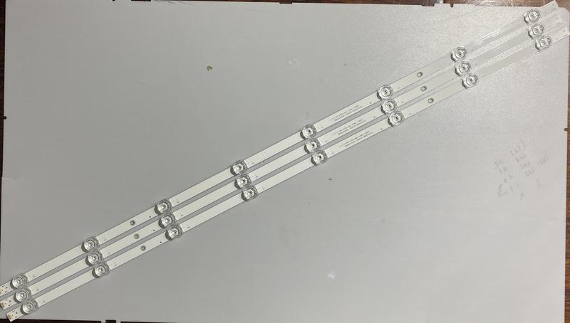 Комплект планок LED подсветки GC43D08-ZC26AG характеристики: - Маркировка: - GC43D08-ZC26AG 303GC430062 - 3A8CY-79612 - Рабочее напряжение одного светодиода: 3 В - Высота планки (подложка + линза): 9 мм - Диагональ экрана: 43″ - Диаметр светорассеивателя: 17 мм - Длина каждой планки: 796 мм - Количество контактов на разъеме: 3 - Количество светодиодов на каждой планке: 8 шт. - Материал подложки: алюминий - Расстояние между центрами крепежных отверстий: 410 мм - Расстояние между центрами светодиодов: 102-104-108-100-108-104-102 мм - Расстояние между центром 1-го и последнего LED: 729 мм - Тип светорассеивателя: вогнутый - Ширина подложки планок: 12 мм - Применение: ремонт задней (Direct LED) подсветки телевизоров - Гарантия: 6 мес. Аналоги GC43D08-ZC26AG: - GC43D08-ZC26AG-15 - GC43D08-ZC26AG-15E Совместимость с моделями телевизоров диагональю 43″: - Ergo: LE43CU6530AK, 43DU6510 - Xiaomi: L43M5-5ARU, L43M5-4X, L43M5-FA и другими. ВНИМАНИЕ: - Рекомендуем перед совершением покупки сверить маркировку LED планок с маркировкой товара на сайте. Иногда маркировка на товаре может не совпадать с той, что указана на ваших планках, хотя и полностью совместима или телевизоры определенной модели могут содержать подсветку отличную друг от друга в зависимости от партии производства. Если сомневаетесь какая подсветка вам нужна, то позвоните для уточнения и консультации. - Перед продажей проверяется каждая планка на работоспособность специальным тестером. Настоятельно не рекомендуется проверять светодиодные линейки устройствами, напрямую не предназначенными для этого. У нас вы можете заказать устройства для проверки работоспособности LED подсветки в разделе оборудование для диагностики. Возможна проклейка теплопроводного скотча по запросу. Полный комплект состоит из трех планок: - GC43D08-ZC26AG (303GC430062, GC43D08-ZC26AG-15) - 3 шт. Цена указана за полный комплект из трех светодиодных планок.
