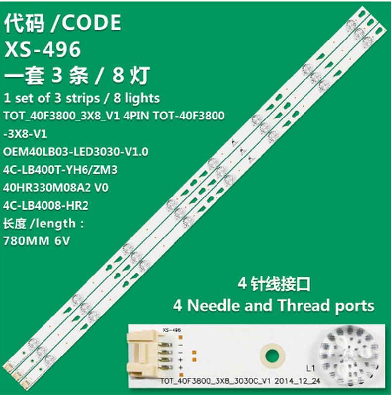 Ціна за комплект з 3-х планок Тип підкладки: алюміній Довжина планок: 690 мм Ширина планок: 18 мм Напруга одного світлодіода: 6V Кількість контактів на роз'ємі: 4 pin Кількість світлодіодів на планці: 8 LED Відстань між світлодіодами по центру: 93-99-99-84-99-99-93 мм Маркування планок: - TOT_40D2900_3X8_3030C_D6T-2D1_4S1PX2 REV.V3 (T**********_3030C_D6T-2D1_4S1PX2 REV.V3) - YHF-4C-LB4008-YH06J Підсвітка підійде до моделей: - TCL: L40P1A-F, L40F1B, L40P1A-F, L40E5800A-UA, L40P2-UD, L40F3303B, L40F3800A, 40HR, 40A730U, 40D2900, 40DS500, 40FC3206X1, 40L2600, 40S305, 40S426, 40S4900, F40D4021, F40D4026, F40S5916, L40D2900F, L40E5800A, L40F2B, L40F33, L40F3301B, L40P1AF, L40P2UD, L40S4900, LED40D2900, LED40D2900AS, LED40D2900S, LED40D2930, F40S5916 40S305, L40P3UD0, L40F5B - Thomson: 40FB5426, 40FB5446, 40FC3201, 40FC3206, 40FC3221, 40FD5406, 40FD5416, 40FD5426, 40FS3000 - Hitachi: CDH-LE40SMART10 - RCA: L40NXSMART, X40SM та інші. Аналоги планок: - 40HR330M08A6 - 40HR330M08A6 V8 - TOT_40D2900 - TOT-40D2900-3X8-3030C - TOT_40D2900_3x8_3030C - TOT_40D2900_3X8_3030C_d6t_2d1_4S1PX2 - TOT_40D2900_3x8_3030c_D6T-2D1_4S1PX2 REV.V33 - T**********_3030c_D6T-2D1_4S1PX2 REV.V3 - TOT_40D2900_3x8_3030C_D6T-2D1_4S1PX2 REV.V3 - JL.D40042330-004ES-M - 4C-LB4008-YH02J - 4C-LB4008-YH05J - 4C-LB4008-YH08J - 4C-LB4008-HR01J - 4C-LB4008-PF01J - YHA-4C-LB4008-YH07J - YHB-4C-LB4008-YH02J - YHB-4C-LB4008-YH05 - YHF-4C-LB4008-YH06J - 40D2006V2W4C1Bx2-69018M Підсвічування матриці (панелі): - LVF395ND1L - LVF400SS0T