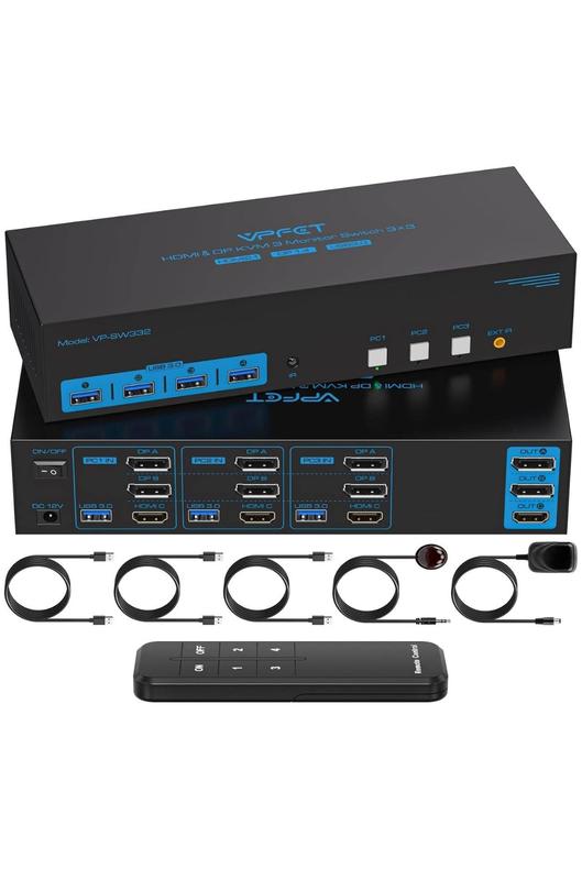 Свич kvm переключатель vpfet hdmi dp kvm 3 monitor switch 3x3 на 3 мониторы та 3 компьюте...