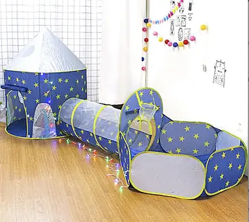 Игровой домик-палатка для игр дома и улице Синий и Розовый Описание: Детская игровая палатка – это не просто игрушка, это маленький мир, где ребенок может воплотить свои фантазии и создать свои приключения! Наша новая палатка обладает всеми качествами, чтобы стать любимым местом игр вашего малыша. Яркий дизайн и веселые рисунки: Каждая деталь нашей палатки привлекает внимание ребенка и вдохновляет его на игру. Забавные персонажи и яркие цвета делают время в палатке еще более увлекательным. Прочность и надежность: Изготовленная из материалов высокого качества, наша палатка выдерживает детские игры и приключения. Даже самые маленькие и активные исследователи могут быть уверены в ее надежности. Легкость в сборке и транспортировке: Специальный дизайн позволяет собрать палатку всего за несколько минут, а компактные размеры делают ее идеальным спутником для отдыха как дома, так и на природе. Универсальность использования: Наша палатка подходит для игр как в помещении, так и на свежем воздухе. Пусть ваш ребенок создает свои приключения на пляже, во дворе или на даче – везде, где хочется веселиться! Легкость в уходе: Мы заботимся о вашем комфорте, поэтому наша палатка легко чистится от пятен и грязи. Просто протрите ее влажной тряпкой, и она будет снова готова к новым играм! Детская игровая палатка – это не только подарок вашему малышу, но и инструмент для развития его воображения, творческих способностей и социальных навыков. Позвольте ему создать свой мир внутри этой волшебной палатки! Характеристики: Материал: Винил; Каркас: Пластик (каркас собирается как в обычной туристической палатке); Возраст: От 3 лет;