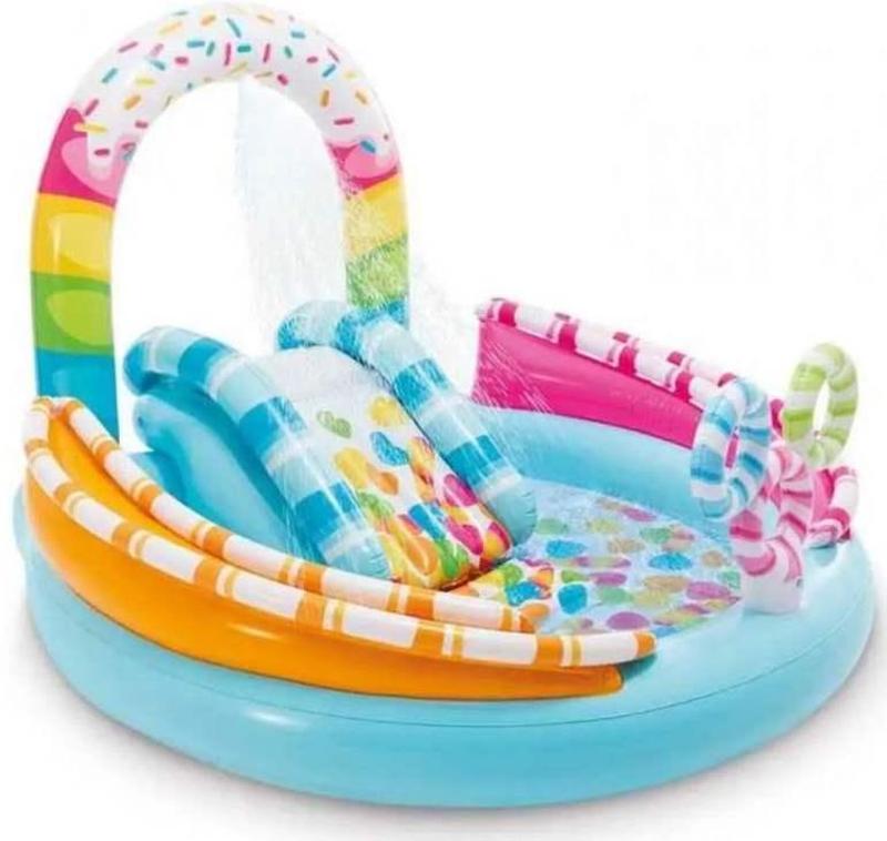 Надувная игровая площадка Intex 170 x 168 x 122 см – идеальный выбор для тех, кто хочет, чтобы их дети могли развлечься и отдохнуть в теплые дни. Яркий дизайн, множество аттракционов, легкая сборка и удобное использование делают его идеальной игровой площадкой для самых маленьких. Дополнительная информация: – К детской площадке можно подключить фильтрующий насос (не входит в комплект). - объем бассейна: 165 литров. - максимальная нагрузка: 54 кг. Технические данные: - размеры: 170 x 168 x 122 см - объем бассейна: 165 литров - материал: ПВХ - - толщина стенок 0,28 мм - Предохранительный клапан: да.