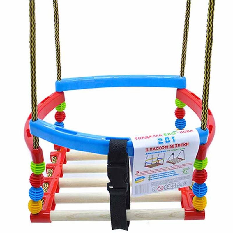 Качеля деревянная подвесная для детей с ремнем безопасности дерево пластика maximus