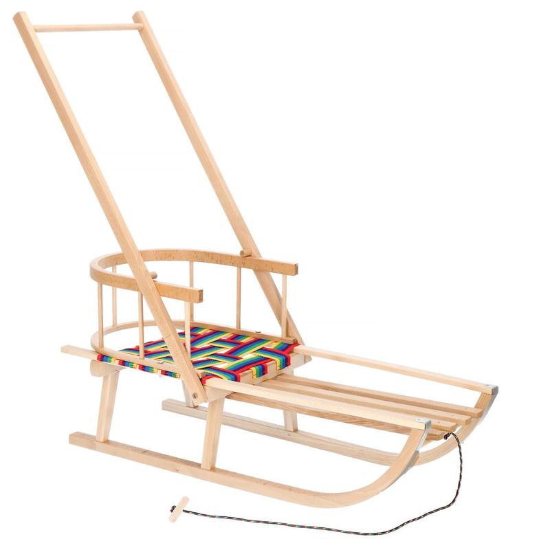 Санки деревянные springos 90 см со спинкой и ручкой-толкателем san006