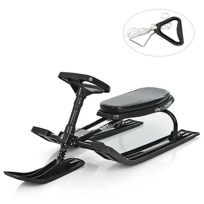 Детские санки - снегокат Snow Racer с рулем, передним амортизатором и ножным тормозом · Сани управляемые до 80 кг Снегокат с рулем Snow Racer – это идеальный транспорт для зимнего веселья детей и взрослых! Прочный металлический каркас, стильный дизайн и надежные материалы делают его отличным выбором для катания с горок и снежных склонов. Снегокат оснащен передним амортизатором, который обеспечивает мягкое и плавное движение даже на неровных участках. Мягкое сиденье из водонепроницаемой ткани дарит комфорт в любую погоду, а ножной тормоз гарантирует безопасное управление. Лыжи, изготовленные из специального пластика, обеспечивают отличное скольжение по льду и рыхлому снегу, а карбоновый руль добавляет удобства и маневренности. Преимущества: Прочная стальная рама – выдерживает нагрузку до 80 кг. Мягкое ортопедическое сиденье – комфорт даже при длительных катаниях. Амортизатор и ножной тормоз – для плавности хода и безопасности. Эргономичный руль – обеспечивает легкость управления. Специальные лыжи – устойчивое движение на любом типе снега. Технические характеристики: Возраст: от 5 лет. Материалы: металл, ПВХ. Сиденье: мягкое, с покрытием из искусственной кожи. Цвета: черный, красный.