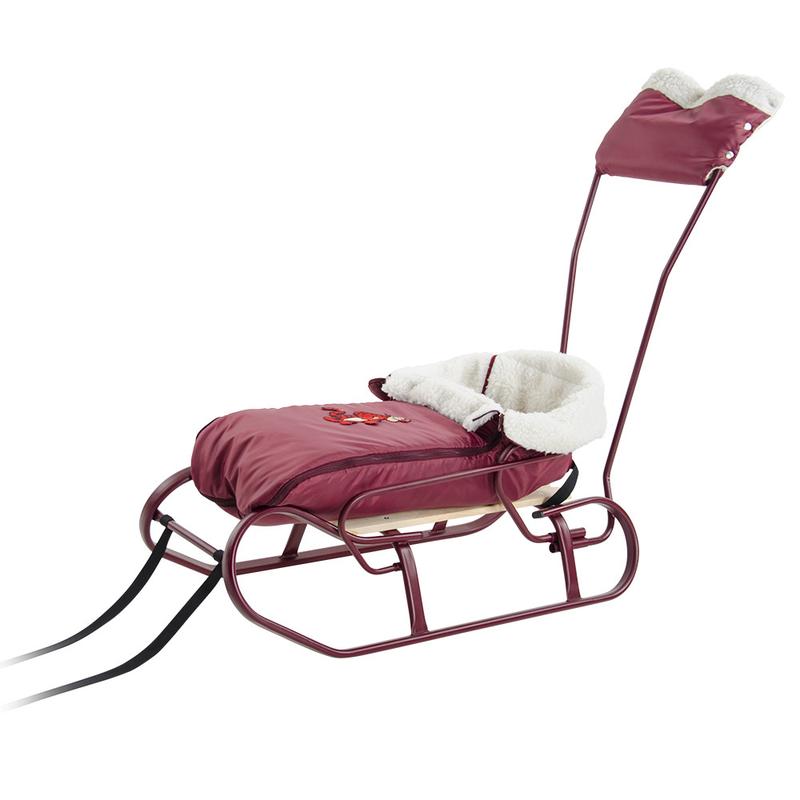 Чохол з муфтою "Конверт" - гарантія комфорту та захисту від холоду/снігу/воді. Внутрішня м'яка частина конверту складається з меху, зовнішня виконана з якісної водонепроникної плащової тканини "Оксфорд 210 Д". Тканина "Оксфорд 210 Д" має водовідштовхувальну функцію, що легко миється та не продувається. Чохол має внутрішній прошарок з меху. До санок аксесуар кріпиться за допомогою зав'язок. Розмір конверту: 250/300/670. Колір зовнішньої тканини – бордовий, колір меху – бежевий.