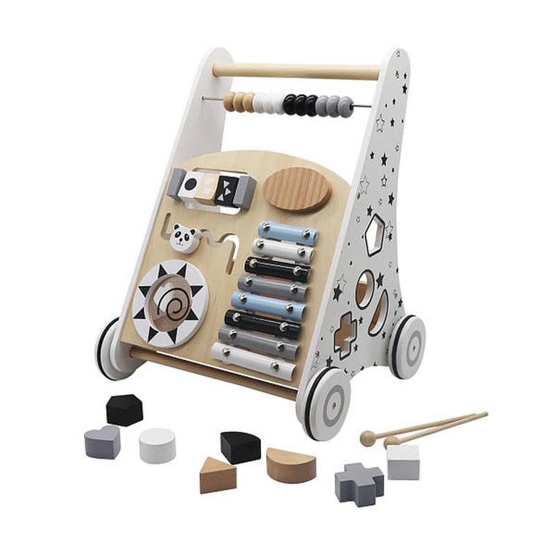 Деревянные ходунки AVKO - это не только функциональное вспомогательное средство в обучении ходьбе, это также настоящая мультимедийная игровая станция, которая дарит детям бесконечные часы развлечений и в то же время поддерживает их всестороннее развитие. Ходунки, изготовленные из натуральной безопасной древесины, имеют много различных манипуляционных элементов, которые стимулируют маленькие ручки к действиям. Это идеальное предложение для детей, начинающих делать первые шаги. Колеса против скольжения и удобная ручка обеспечивают безопасность и стабильность, позволяя малышам свободно передвигаться и исследовать мир. Цвета ходунков красивые и разноцветные, что привлекает взгляды детей и стимулирует их зрение. Различные фактуры материалов стимулируют ощущение прикосновения. Кроме того, в ходунках есть практичный контейнер для кубиков или других любимых игрушек малыша. Благодаря специальной полочке игрушки остаются на месте, и ваш малыш может наслаждаться игрой, где пожелает. Ходунки - это не только помощь в обучении ходьбе. Это, прежде всего, интерактивная игрушка, которая развивает логическое мышление и творческие способности ребенка. Такие элементы, как счеты, тарелки, вращающиеся цифры, сортировщик с кубиками или раздвигающийся плюшевый мишка поощряют детей к игре, одновременно развивая их ручные навыки, когнитивные способности и двигательную координацию. Параметры продукта: Поддержка для обучения ходьбе - благодаря нескользящим колесам и устойчивой ручке ходунки помогают малышам научиться ходить, обеспечивая безопасность. Развитие ручных навыков - много интерактивных элементов, таких как абак, цифры или сортер с кубиками, поощряют ребенка манипулировать, улучшая его ручные навыки и двигательную координацию. Сенсорная стимуляция - игрушка с разными текстурами и яркими цветами стимулирует зрение и прикосновение ребенка. Развитие навыков логического мышления - игра с сортировщиком форм и счетами развивает причинно-следственное мышление и навыки решения проблем. Развитие воображения - плюшевый движущийся мишка и кубики различных форм дают детям возможность создавать собственные игровые сценарии, развивая творческие способности. Хранение игрушек – в игрушку входит контейнер для кубиков, помогающий научить детей ответственности и порядка. Для детей от 3-х лет Деревянная, прочная конструкция Тарелки и барабан Сортировщик Лабиринт Контейнер для предметов Колеса против скольжения В набор входят блоки и палочка для игры на цимбалах Помогает научиться ходить Сертификаты: CE, EN71, SGS Размеры продукта: материал: дерево / металл размеры: 36х30,8x46см. вес: 2,64кг. вес с упаковкой: 3,04кг.