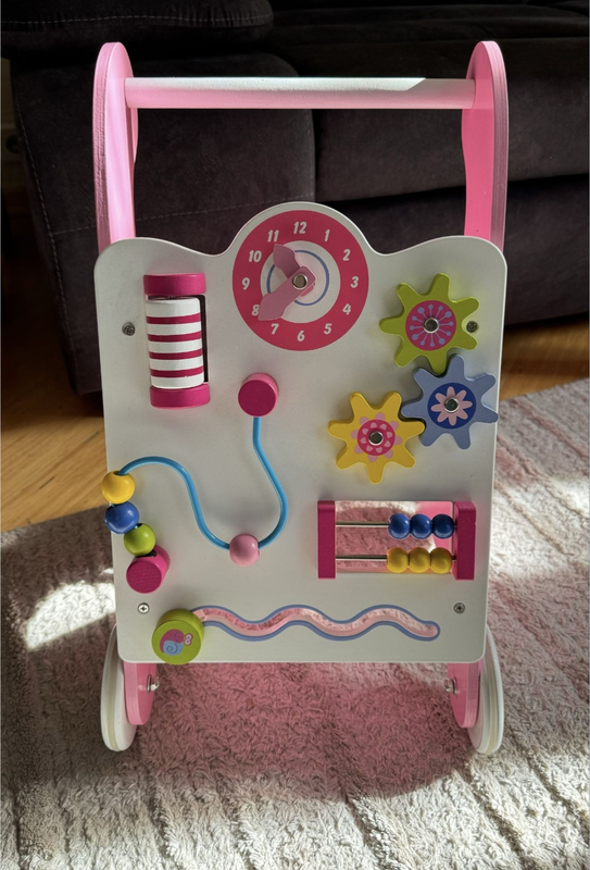 Деревянный толокар для девочки, новый. Не пользовались, потому что было два. Все упаковано в оригинальной упаковке.