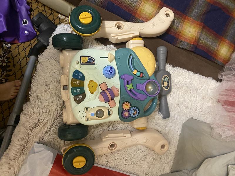 Дитячий багатофункціональний візочок 5 в 1 — це інтерактивна іграшка для дітей від 18 місяців до 4 років з яскравою космічною тематикою. Візочок легко трансформується в ходунки, толокар, самокат та багатофункціональний столик із сенсорною панеллю. Виготовлений з безпечного пластика, він приваблює дитину різноманіттям кольорів, звуковими і світловими ефектами. Іграшка працює від 3 батарейок типу AA (не входять у комплект). Візочок має регульовану висоту, замок коліс і шини, що не ковзають, для безпечної гри.