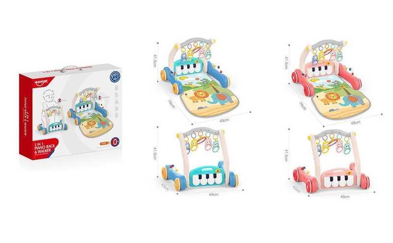 Оригинальные ходунки для детей Эти необычные детские ходунки не только помогут вашему малышу сделать первые шаги, но и легко превратятся в развивающий коврик с множеством игрушек. Это идеальное решение для родителей, которые стремятся обеспечить всестороннее развитие своих детей. Удобство и безопасность Ходунки имеют эргономичную конструкцию, что позволяет маленьким исследователям чувствовать уверенность во время обучения ходьбе. Развивающий коврик украшен яркими рисунками животных и предлагает множество звуковых открытий, среди которых: - музыкальное пианино с несколькими режимами; - брязкалки-подвески с звенящими элементами и зеркалом; - пальчиковые лабиринты для развития мелкой моторики. Основные характеристики: - 2 в 1: ходунки и развивающий коврик; - пианино, работащее от 2 батареек типа AA; - мягкий коврик размером 83х50 см; - прочный первичный пластик, безопасный для детей.