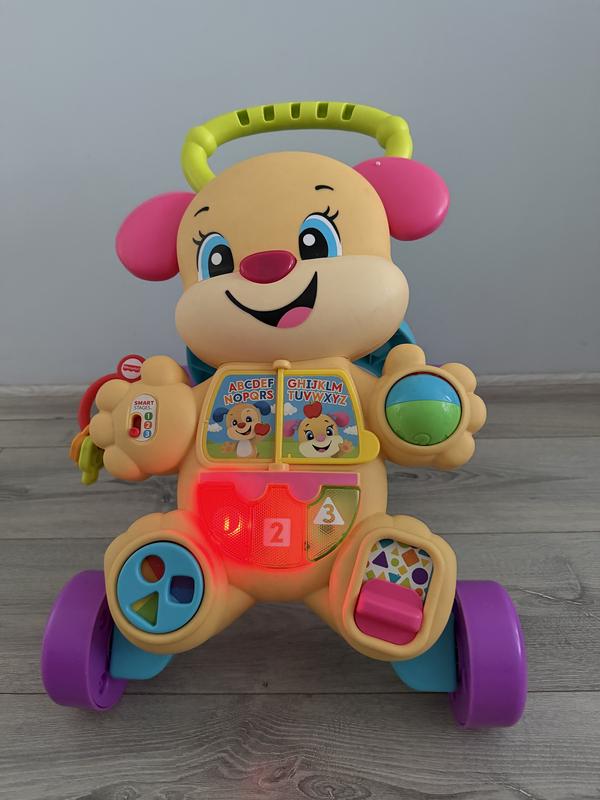 Дитячі ходунки-каталка Fisher-Price «Веселе цуценя» Яскраві та надійні ходунки для перших кроків малюка. Допомагають розвивати координацію, моторику та заохочують дитину ходити самостійно. Функції та переваги: Міцна конструкція, стійкі колеса, Зручна ручка для підтримки під час ходьби, Світлові та звукові ефекти, Інтерактивні елементи: кнопки, книжечка з літерами, фігурки, кулька, Навчальні режими (літери, цифри, пісеньки). Підходять для дітей від 6 місяців Стан: гарний / робочий. Лише один дефект на 3 фото. Без коробки Батарейки: встановлені. Розмовляє на англійській мові.