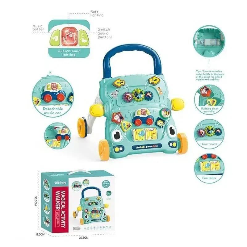 Первые шаги ребенка – это всегда волнующее событие как для родителей, так и для самых малышей. Важно, чтобы ребенок делал эти шаги уверенно и безопасно. Первые шаги Magic Activity Walker - это ходунки, каталка и игровой центр в одном предмете. Игрушка имеет удобную ручку, которая служит дополнительной опорой при ходьбе и позволяет толкать и катить ее перед собой. Устойчивая конструкция предотвратит от падения. Сначала малыш может играть с развивающей панелью в сидячем положении, а позже будет полноценно использовать игрушку в качестве своих первых ходунков и каталки. Каталка имеет множество дополнительных игровых элементов: веселые шестерни; сортер с геометрическими фигурами; вращающиеся цветные цилиндры; музыкальная машинка с мелодиями и различными звуками. Машинка имеет вращающиеся колеса и яркую подсветку. Она снимается и может использоваться как полноценная самостоятельная игрушка. Большое количество движущихся частей, кнопок и разнообразные дополнительные функции - будут стимулировать ребенка к познавательной деятельности. Каталка поможет малышу встать и сделать первые шаги в полной безопасности, развить мелкую моторику рук, тактильное восприятие, музыкальный слух, память, логическое мышление, координацию движений, а также укрепит мышцы ног. Световые и звуковые эффекты работают от 2 батареек типа ААА (в комплект не входят).