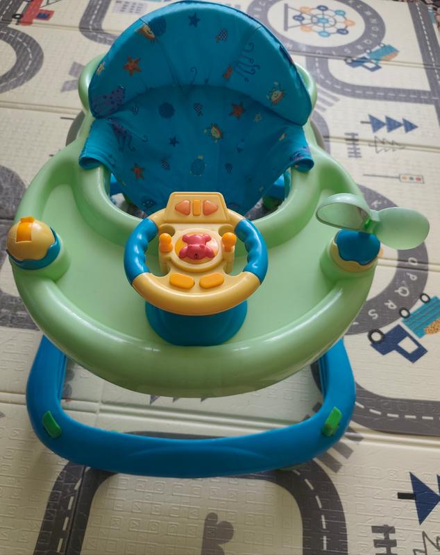 Детские ходунки Geoby (6 колес + стопора) Продам надежные ходунки от известного бренда Geoby. Очень устойчивая и безопасная модель для первых шагов вашего малыша. Характеристики и преимущества: Безопасность: Имеют 6 поворотных колес для легкости движения и 4 специальных стопора, предотвращающих переворачивание на порогах или неровностях. Регулировка: Высота сиденья регулируется под рост ребенка. Компактность: Легко складываются для хранения. Состояние: Полностью рабочий. Из нюансов - есть незначительные потертости на пластике, отодвигающееся маленькое зеркальце на игровой панели и ричаг передач. Руль светится (если поменять батарейки то возможно есть звук, не разыгрывали). На функциональность и безопасность это никаким образом не влияет. Главное - ребенок никогда не переворачивался как бывает в некоторых моделях В подарок к креслу для кормления шезлонг 3в1 карелло триумф салатового цвета