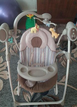 Крісло-гойдалка TILLY Nanny BT-SC-0005 Beige. Продам б/у заколисувальний центр. Дефектів немає, стан гарний. Крісло-гойдалка TILLY Nanny чудово підійде для новонародженого малюка. М'який додатковий підголівник забезпечить комфорт для дитини, а п'ятиточкові ремені подбають про її безпеку. Також це крісло має гідний набір розваг: обертовий музичний мобіль, 16 приємних мелодій і 5 звуків природи з регулюванням гучності, столик з обмежувачем. Для зручнішого користування крісло обладнане таймером на 15, 30, 60 хвилин і пультом дистанційного керування. Крісло виготовлене з високоякісних матеріалів. Міцна конструкція забезпечує гарну стійкість за компактних розмірів. Характеристики товару Розмір, ДхВхШ, см. 71x98x66 Вік Від 0 до 12 місяців Макс. вага дитини, кг. 15 Ремінь безпеки 5-ти точечный Нахил спинки 3 положення Звуковий супровід Є Живлення Батареї 4х1.5V size C LR14/Від мережі Аксесуари Вкладка, знімний столик, мобіль, пульт ДК