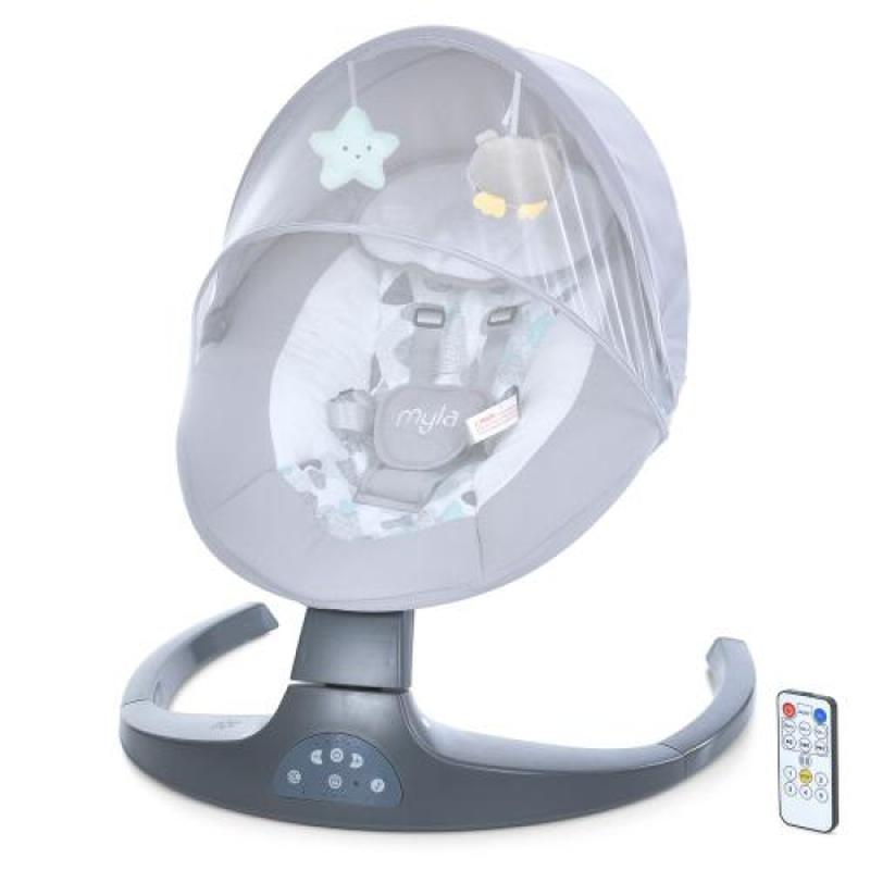 - Заколисуючий центр має стійку алюмінієву основу. - Зручне м'яке сидіння має знімний додатковий підголівник. - 5 ти точкові ремені безпеки з паховою накладкою регулюються під ріст дитини. - Багатофункціональний капюшон з москітною сіткою регулюється. - Сидіння регулюється в 2-х положеннях. - На капюшон підвішені 2 іграшки, які розважать дитину під час неспання. - Центр має 5 швидкостей качання і програми похитування, які дозволять встановить хитання на 5, 15 або 30 хвилин. - 12 мелодій з регулюванням гучності заспокоять і заколишуть малюка. - USB-порт дозволить підключати власну музику. - Bluetooth. - Керувати заколисуючим центром можна за допомогою панелі або пульта. - Легка складна система зі знімним сидінням. - Матеріал: метал, пластик, тканина. - Живлення: від мережі або від 4-х батарейок АА (у комплект не входять). - Максимальне навантаження: 20 кг. - Вага: 5,3 кг. - Розміри заколисуючого центру (ДхШхВ): 73х72х69 см. - Розмір спального місця (ДхШ): 80х55 см. - Розмір в упаковці: 49,5х52х19 см. - Вага в упаковці: 6,1 кг.