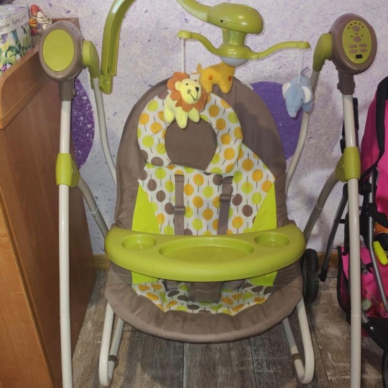Особенности кресла-качалки Carrello: -выбор скорости укачивания; -управление мелодиями; -таймер: 15, 30, 60 минут; -яркий вращающийся мобиль; -16 мелодий; -5 звуков природы; -регулировка громкости; -мягкий подголовник; -наклин спинки регулируется: 3 положения; -съемный столик с ограничителем; -пятиточечный ремень безопасности; -пульт дистанционного управления; -максимальный вес ребенка: 15 кг. Питание: 4 батарейки 4х1.5V size C LR14; от сети с помощью блока питания, который идет в комплекте. Цена 1600