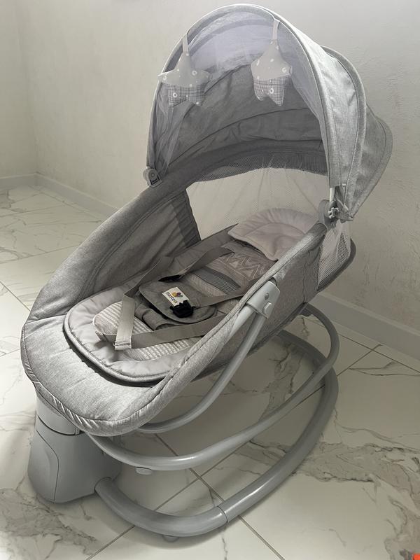 **Mastela – багатофункціональний центр для новонароджених:** * 4 в 1: закачувальний центр, шезлонг-гойдалка, стільчик, стільчик зі столиком. * Підходить від народження до 18 кг. * 5 швидкостей гойдання, таймер, 15 мелодій. * Регульована спинка, 5-точкові ремені безпеки. * Знімний столик, капюшон з іграшками, москітна сітка. * Керування через додаток, MP3, Bluetooth, USB. * Компактно складається, знімний чохол для прання. * Живлення від мережі.