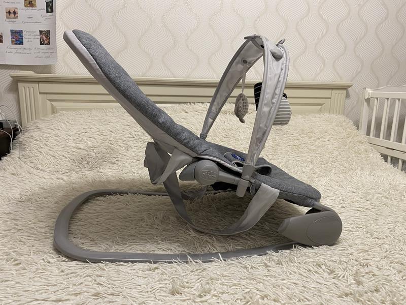 Chicco Hoopla – це комфортний шезлонг з підвісними іграшками від народження до 6 місяців (до 9 кг) та м'яке крісло для відпочинку дитини від 6 місяців (до 18 кг). Особливості: 4 положеннях спинки – з горизонтального положення підіймається у положення для ігор і активностей за кілька секунд; передні ніжки можна використовувати в зафіксованому положенні для сну або у вільному положенні – для заколисування дитини; ігрова дуга з м'якими іграшками – спроектована у співпраці з провідними фізіологами та забезпечує розвиток когнітивних навичок і дрібної моторики; м'який адаптер-вкладиш легко знімається і стирається; крісло-гойдалка швидко і компактно складається.