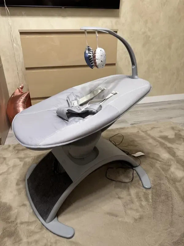 Виконує 8 унікальних рухів, адаптуючись до потреб малюка впродовж дня: гойдання, колисання, прогулянка, після прийому їжі, автомобіль, релакс, верхова їзда, гра. Три положення нахилу спинки для комфортного відпочинку та розваг. Сітчастий текстиль забезпечує циркуляцію повітря та попереджає виникнення опрілостей. Можна прати у пральній машині при 30°C. 15 мелодій, звуки природи та панель із двосторонніми підвісками зачаровують та допомагають розслабитись. Легкий у користуванні тачскрин дисплей дозволяє швидко обрати потрібну функцію та установити таймер на 10, 20 або 30 хвилин. П'ятиточкова система безпеки для надійного утримання дитини і спокою батьків. СТАН НОВОГО Є коробка