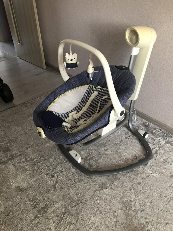 Заколисуючий центер, можна використовувати як шезлонг, гойдається вперед-назад та з сторони в сторону. Працює від електромережі або від батарейок. Можна увімкнути мелодії або спів птахів, шум вітру, моря. Також є нічник.