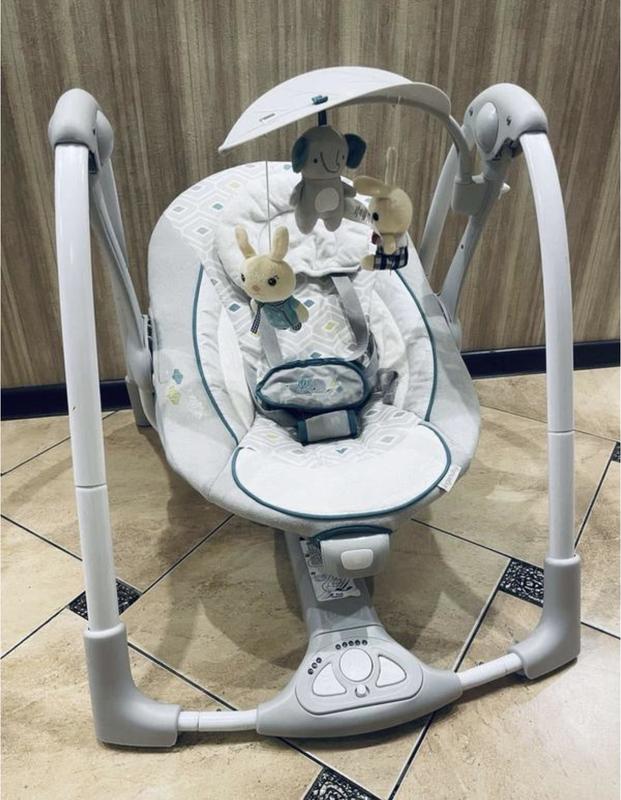 Крісло-гойдалка Ingenuity «ConvertMe» - комфорт та розваги для малюка Це сучасне крісло-гойдалка створено для немовлят від народження до 9 кг, забезпечуючи їм затишок, спокійний відпочинок та приємні враження. Головні особливості: Технологія True Speed™ - забезпечує 5 рівнів автоматичного гойдання та вібрації для плавного заколисування. Безшумна робота – двигун Whisper Quiet™ працює майже безшумно, а таймер автоматично вимикає пристрій. Компактне зберігання – конструкція SlimFold™ дозволяє легко складати крісло, що зручно для подорожей чи зберігання. Режим вібрації – система Easylock™ дозволяє активувати вібрацію для додаткового заспокоєння малюка. Звукові ефекти - 12 мелодій та 4 звуки природи з можливістю регулювання гучності створюють заспокійливу атмосферу. Комфорт для малюка - м'який підголовник, що знімається, підтримує голову дитини. Ігровий елемент - поворотна дуга з підвісною іграшкою сприяє розвитку сенсорних та моторних навичок. Надійність та безпека - 5-точковий ремінь безпеки та стійкі ніжки забезпечують стабільність під час використання. Зручність у догляді - чохол, що знімається, можна прати вручну або в машинці при 30°C. Індикатор заряду – допоможе контролювати рівень батареї. Ingenuity «ConvertMe» - це чудове рішення для батьків, які хочуть забезпечити своєму малюку комфортний відпочинок та веселі моменти щодня. Характеристики Вік користувача від народження Розміри 55,9 x 59,7 x 58,4 см Тип Крісло-гойдалка Розмір упаковки 58 x 22 x 38 см Максимальне навантаження до 9 кг Відправити будь якою поштою і скину додаткові фото та відео