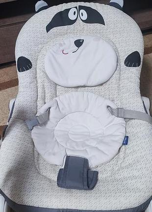стан гарний, все працює, іграшки рідні. спинка регулюється, легко переносити за рахунок ручок. ніжки складаються та можна гойдати. нас дуже виручав, користувались з місяця, ремені безпеки є. можна і 6м+, перетворюється в крісло. легко прати і прати можна всю тканину, все легко знімається. надійний, не перевертається.
