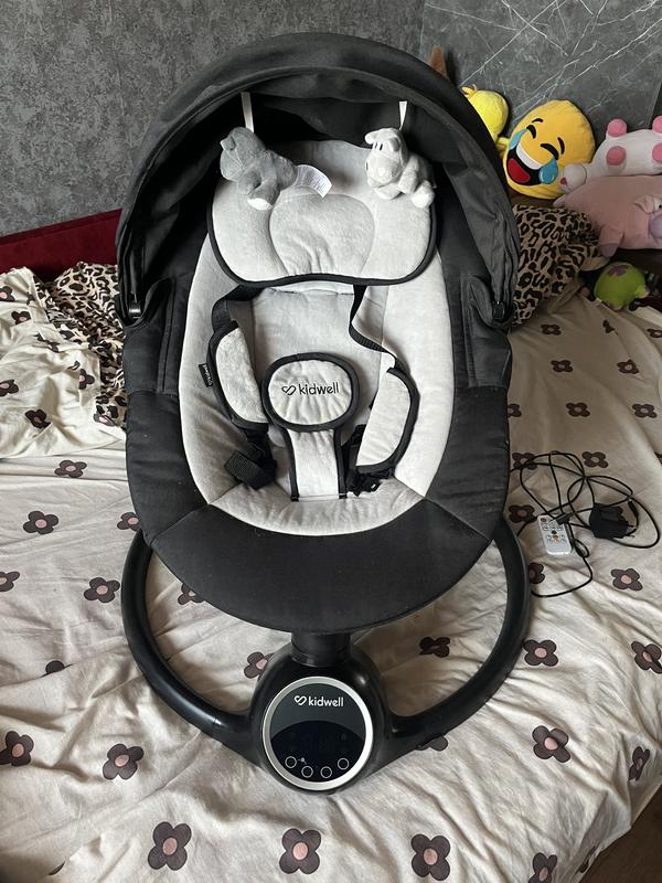 Качель в хорошем со стоянии Есть маленький дефект , добавила фото. Коробка от качели если что имеется Есть подключение к блютузу и встроенные мелодии. Можно выставить таймер . Можно от сети или на батарейках