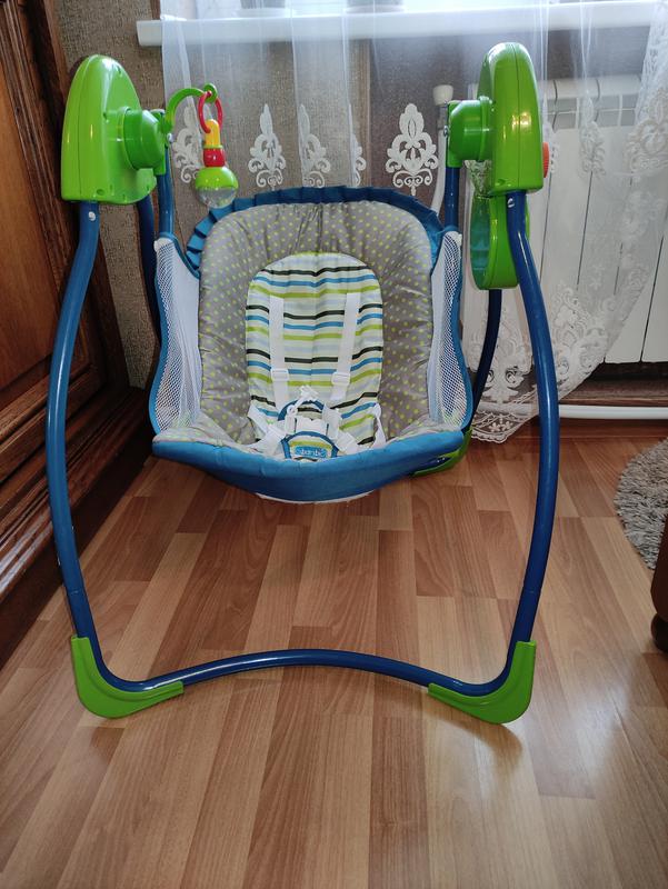 Очень хорошая качелька для деток Много раз выручает.Когда мама занята, ребенок немного отвлечется.Ребенка пристёгиваете и ваши руки свободны.Спрашивайте ,скажу что интересно.В ОЧЕНЬ хорошем состоянии