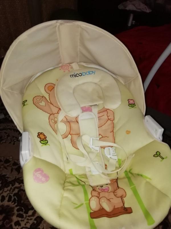 В хорошем состоянии, все рабочее. Работает как от сети, так и от батареек. Есть три режима колыхания, есть разные звуки( пение птиц, звуки природы....) можно вставить флешку. Ребёночку очень нравится.