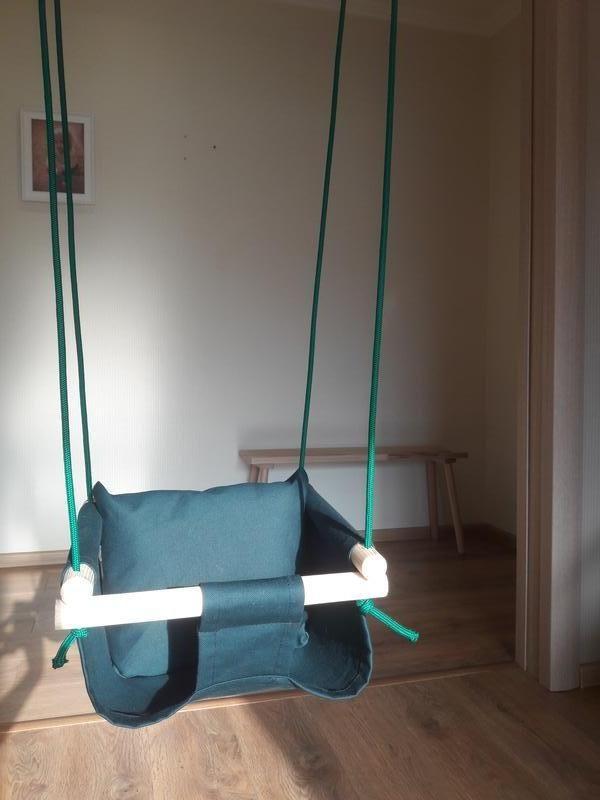 Качеля предназначена для малышей возрастом от 6 месяцев и до 3х лет. Вес нагрузки максимально 50 кг. Теперь малышу будет чем заняться а мама тем временем сможет отдохнуть. Дополнительные характеристики: Пол: Унисекс Возраст : До 3 лет Материал : Текстиль Вид : Качели