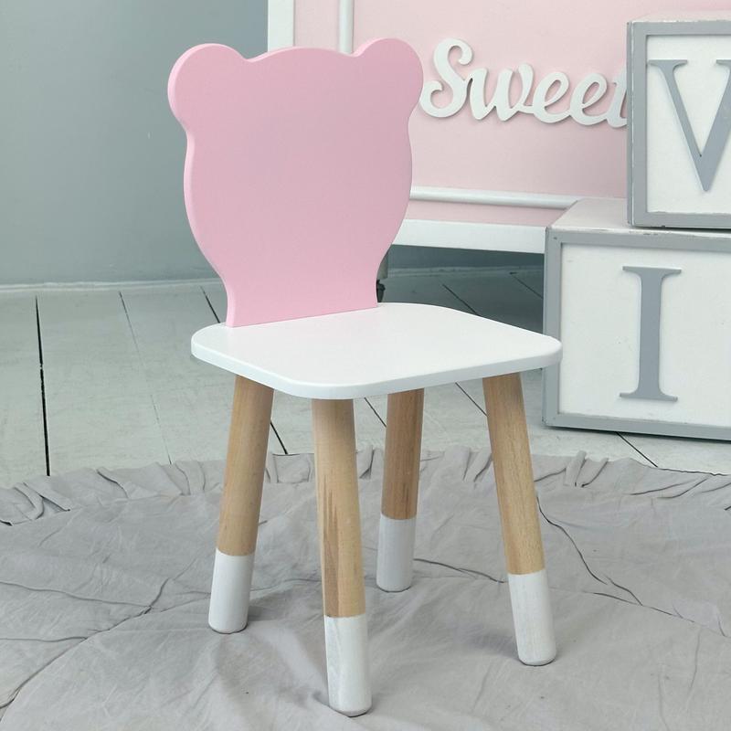 Детский деревянный стульчик мишка 26х26х24см, стул со спинкой для детей, белый с розовым