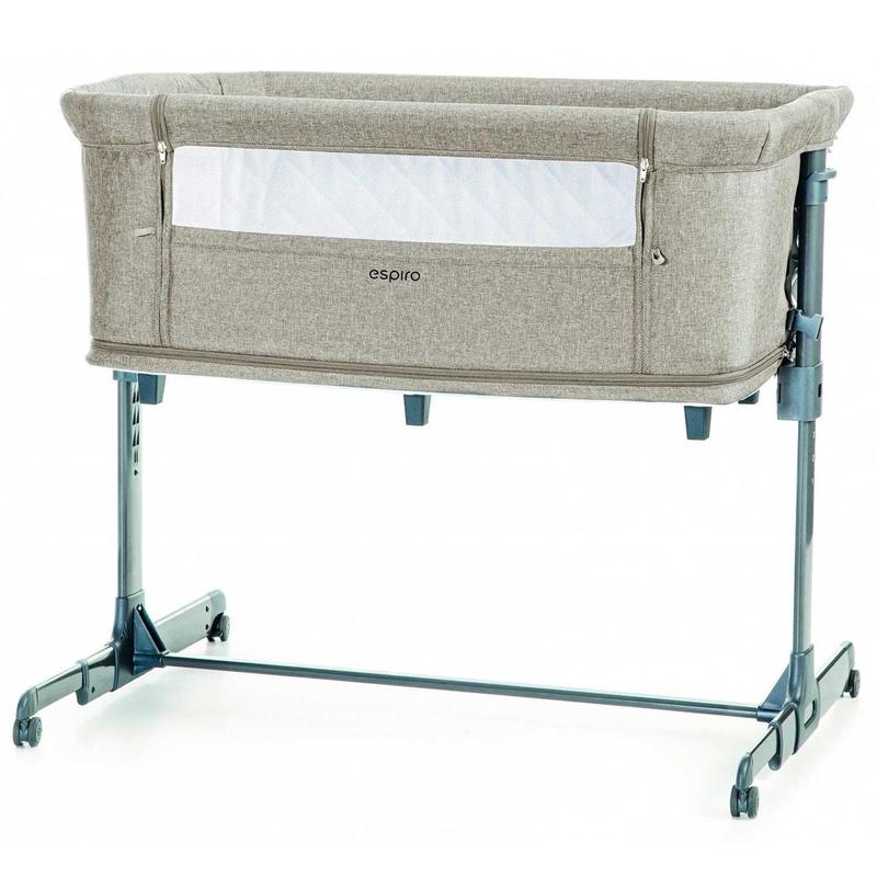 Приставная кроватка-манеж 3 в 1 Espiro Cloud идеально приспособлена для малышей с первых дней жизни. Для комфорта и безопасности мы разработали детскую кроватку, которую можно разместить в спальне родителей вплотную к взрослой кровати, чтобы вы всегда были рядом со своим ребенком. Кровать - манеж Espiro Cloud (Эспиро Клауд) легко совмещается с кроватью родителей, а также может использоваться как манеж или как обычная детская кроватка. Совместима с разными моделями взрослых кроватей. Характеристики: - функция манежа с боковым входом - 4 колеса для легкого передвижения и регулировки положения - регулировка высоты ножек - открывающаяся сторона позволяет ухаживать за ребенком в любое время - регулировка длины ножек позволяет легко совмещаться с любой кроватью для взрослых - практичный карман для всех необходимых вещей и игрушек - мягкий матрас и хлопчатобумажная простыня в комплекте