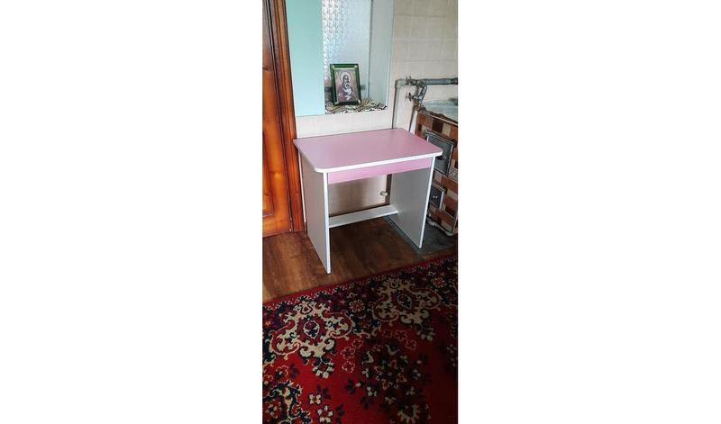 Тип меблів: Столи Матеріал: ЛДСП Колір ніжно-рожевий + білий Висота 66 см Ширина 71 см Глибина 46 см Можу переслати упакованою в розібраному стані)