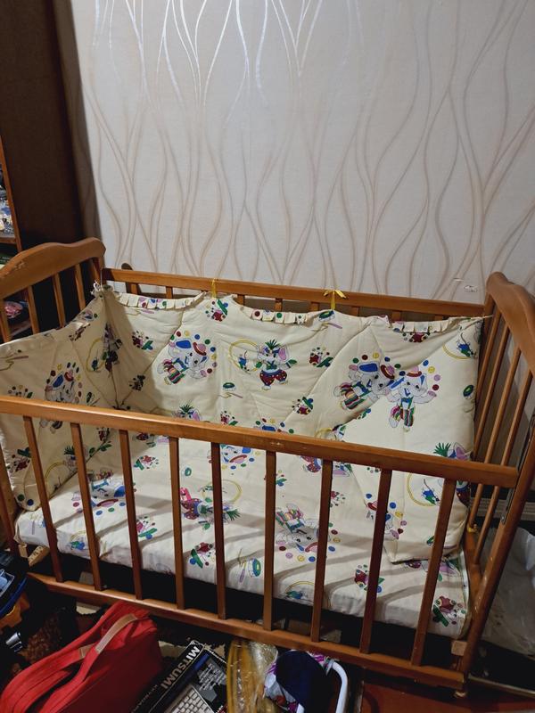 Манеж в дуже гарному стані. Дерево, обробка натуральним матеріалом. Передня стінка регулюється по висоті, взагалі знімається. Є нижні планки для більш дорослої дитини, щоб вилазити самостійно з ліжка. В додаток даю ортопедичний матрац з кокосовою койрою. І також м'яке облаштування внутрішньої поверхні манежа. Манеж на коліщатко, які знімаються. Манеж можна качати (ніжки, як качалка). Пересилаю у розібраному вигляді. Всі шурупи йдуть в комплекті.